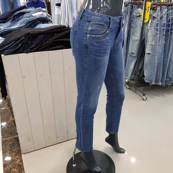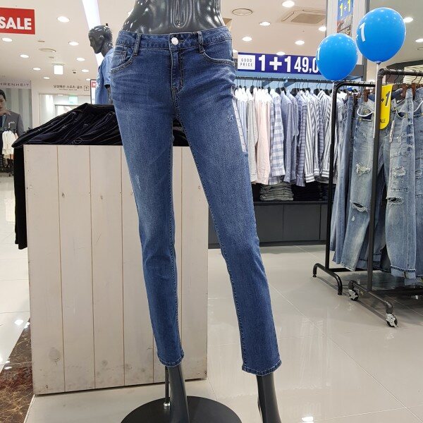 여름. 여성. 저온스 미디엄 인디고 컬러의 저온스 온부 스트레이트.자연스러운 캣브러시 기스구제. 여름 데일리 아이템.[마네킨 27사이즈 착장]