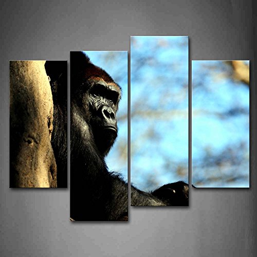 -. Title : First Wall Art - Gorilla Sit On Tree Trunk Wall Art Painting Pictures P.R.Int On Canvas Animal The Picture For Home Modern Decoration