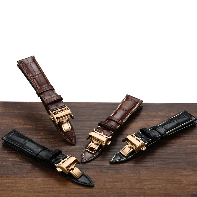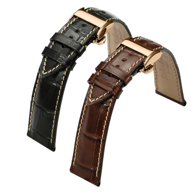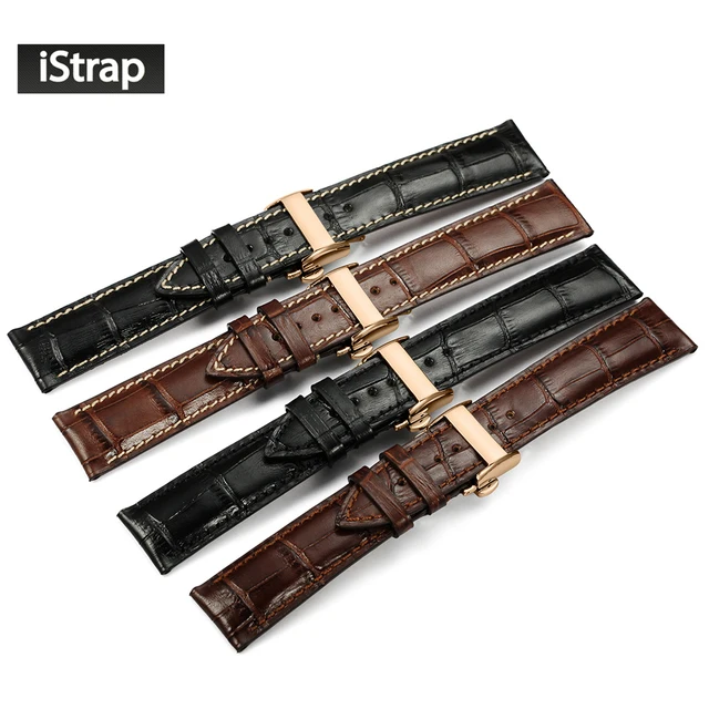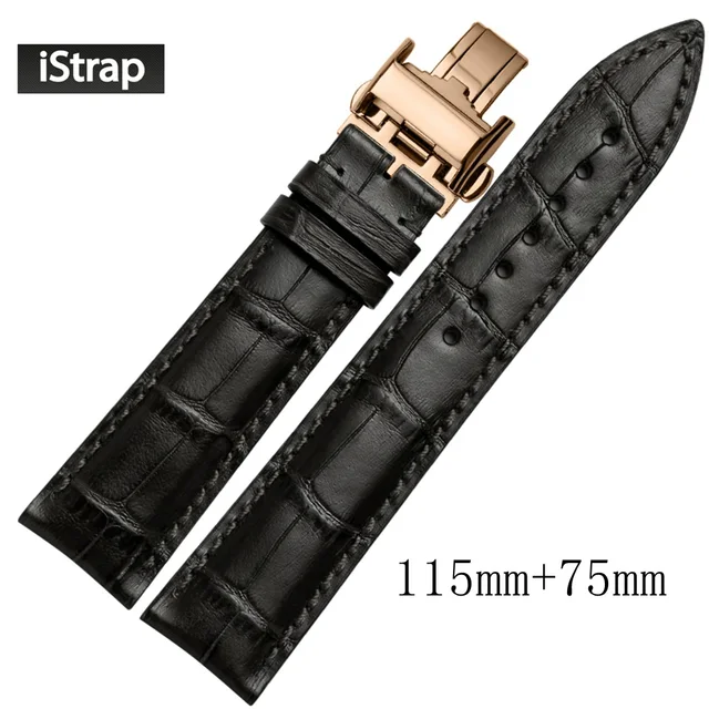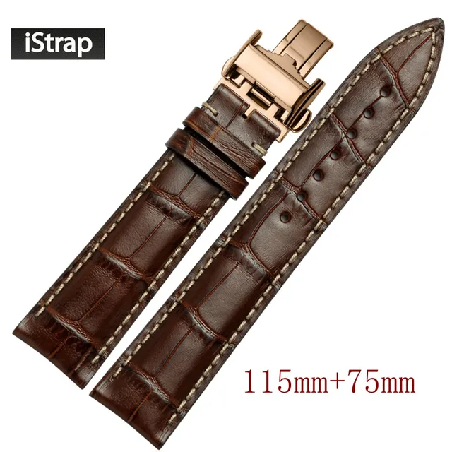 | [해외]Istrap 20 미리메터 21 미리메터 22 미리메터 시계 스트랩 블랙 브라운 이탈리아어 정품 가죽 손목 시계 로즈 골드 배포 버클 스트랩 남성 여성 |