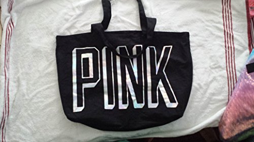 -. Title : Victoria Secret PINK Black Tote Bag with Metalic Letter