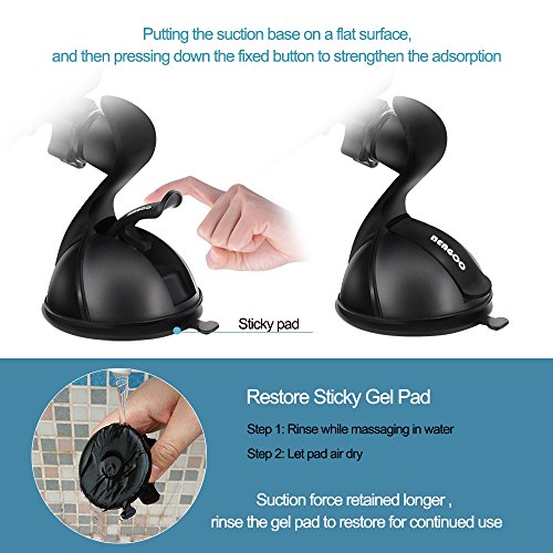 STRONG SUCTION CUP:Super strong sticky gel can easily adhere to most surfaces like windshield, dashboard and other smooth or textured ones yet is also easy to remove from hese surfaces(It may not work on leather/vinyl dashboards).Please rinse the gel cup and let it air dry for continued use if it falls off dashboard.