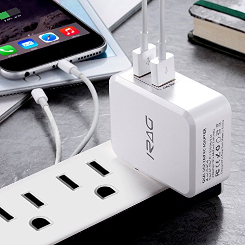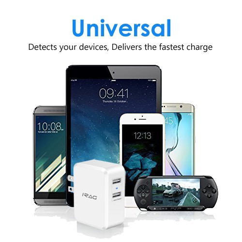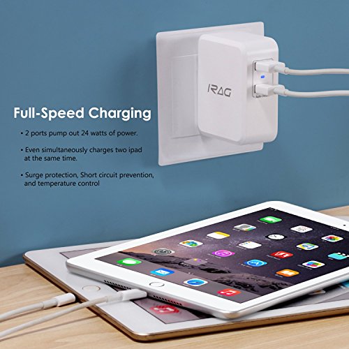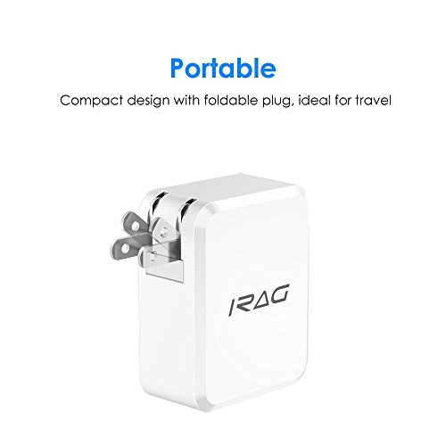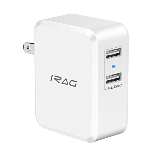iRAG 24W 4.8A Dual USB Home Wall Charger Plug Adapter with Foldable Plug for iPhone, iPad, Samsung Galaxy, Nexus, Google, HTC, Motorola, LG and More