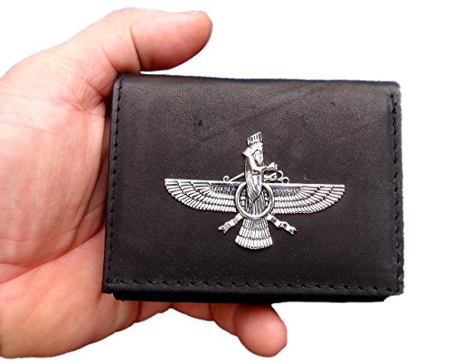 -. Binding : Apparel -. Brand : Asoodehdelan -. Color : BLACK -. Department : MEN -. Feature : Genuine Leather Trifold Wallet / More than 18 Slots for Credit Card And ID / Farvahar Symbol Is Stainless Steel, Never Tarnish / Nice And Memorial Gift For Iran Lovers / Check Out our store and take a look at all our new Persian items -. Label : Asoodehdelan -. Manufacturer : Asoodehdelan -. PackageQuantity : 1 -. ProductGroup : Apparel -. ProductTypeName : ACCESSORY -. Publisher : Asoodehdelan -. Size : MEDIUM -. Studio : Asoodehdelan -. Title : Genuine Leather Trifold Farvahar Wallet Iranian Persian Gift Iran Faravahar