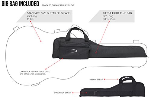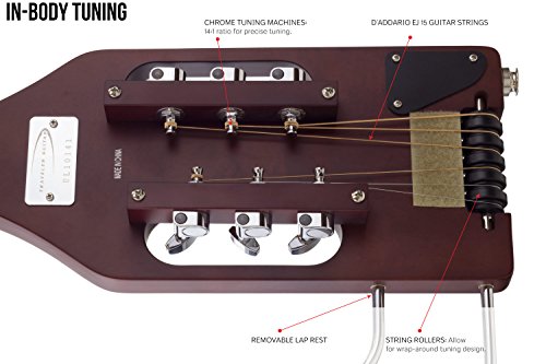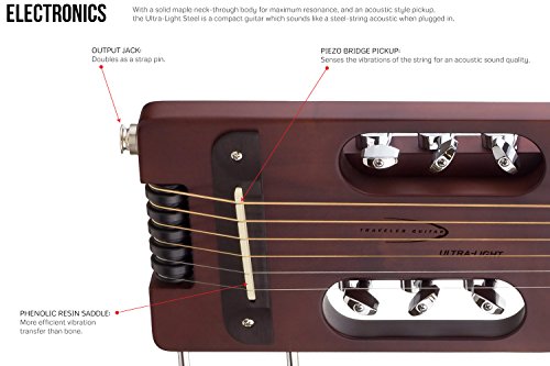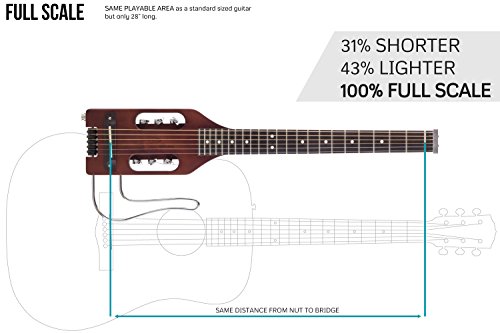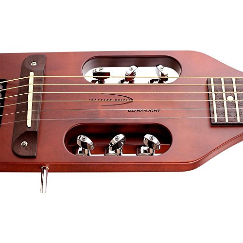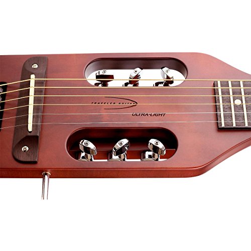 Studio : Traveler Guitar Publisher : Traveler Guitar Binding : Electronics Product Description The Traveler Guitar Ultra-Light is the smallest, lightest full-scale acoustic/electric travel guitar on the market. The proprietary In-Body Tuning System uses standard tuning machines relocated into the body, eliminating the need for a headstock. As a result, you’ll have the same full-scale playing experience you’re used to on an instrument that’s 31 percent shorter and 43 percent lighter than a typical full size acoustic. You can plug the Ultra-Light into your favorite amp or recording device thanks to its Shadow acoustic piezo pickup and standard 1/4 inch output. The lap rest is detachable for easy transport, so guitar and bag fit easily in an airline overhead compartment. And, since the guitar weighs less than three pounds and is only 28 inches long, you can take it anywhere. The Traveler Guitar Ultra-Light is the perfect solution for traveling players who want a full-scale experience in the smallest, lightest package possible. 0