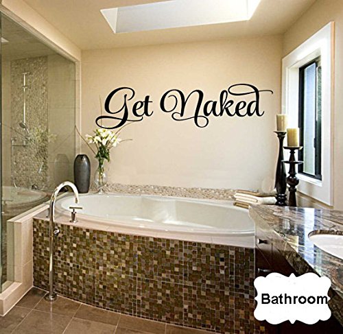 DNVEN (Black Large 36"w X 9"h) Get Naked Vinyl Decal Waterproof Bathroom Words Letters Handmade Wall Arts Decals Stickers Removable Vinyl