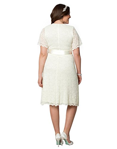 Binding : Apparel Product Description Channel the glamour of old Hollywood on your special day with our Lace Confections Wedding Dress. This beautiful dress embodies retro style with a flattering empire waist and A-line skirt that flows away from the body creating a fantastic shape. You will love the simple detailing of the removable satin sash and rhinestone and pearl encrusted brooch. The delicate stretch scalloped lace skims over your curves for a comfortable fit and a surplice neckline and sheer lace flutter sleeves give just the right amount of coverage. Self: 57% Nylon, 43% Rayon; Lining: 100% Polyester. Dry clean only. Made with love in the U.S.A. 0