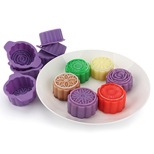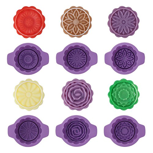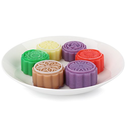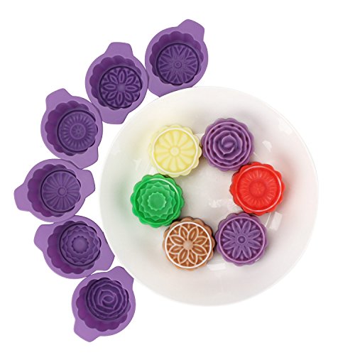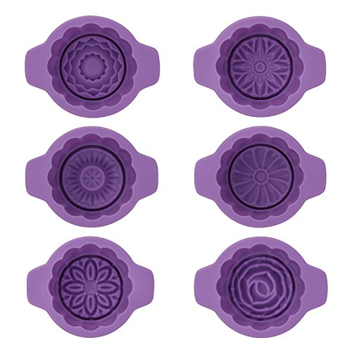Beasea 6pcs Set of Moon Cake Mold Autumn Festival Mooncake Molds Flower Design DIY Decoration Cupcake Cookie Cutter Press Purple
