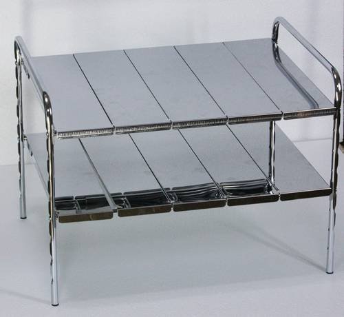 It is made of stainless steel and strongly lasts for rust ♪ The shelf board that can be adjusted according to the thing that can be adjusted is 8 stages of 4 cm pitch.
