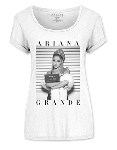 -. Binding : Apparel -. Brand : Ariana Grande -. ClothingSize : One Size -. Color : White -. Department : womens -. Feature : Officially Licensed Product / Quality Womens Skinny Fit T Shirt / Great Gift For Any Fan / Short Sleeve / machine Washable -. Label : Ariana Grande -. Manufacturer : Ariana Grande -. MPN : ARGRTS01LW -. NumberOfItems : 1 -. PackageQuantity : 1 -. PartNumber : ARGRTS01LW -. ProductGroup : Apparel -. ProductTypeName : SHIRT -. Publisher : Ariana Grande -. Size : One Size -. Studio : Ariana Grande -. Title : Ariana Grande T Shirt Mug Shot Picture Logo Official Womens White Junior Fit