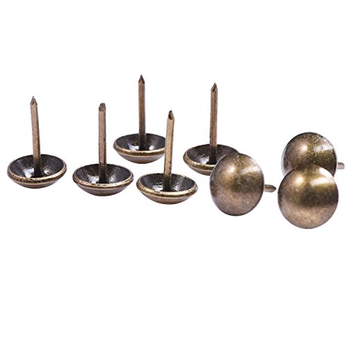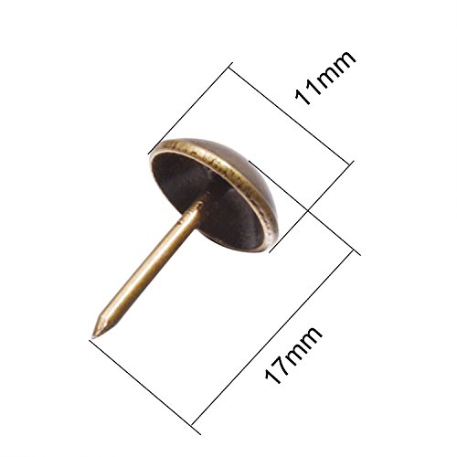 Outus 120 Pieces Upholstery Tacks 11 by 17 mm Antique Brass Tacks Bronze Nail Pins Furniture Thumb Tack Pins with Plastic Box