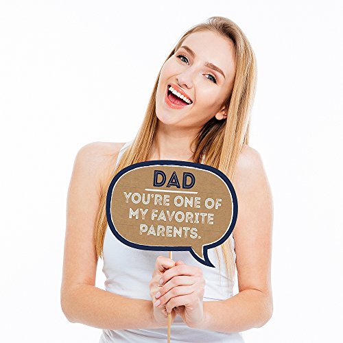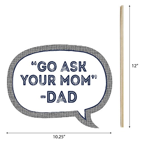 10-Piece Funny My Dad is Rad Photo Booth Props Kit INCLUDES 10 Blue, Brown and Black arrow and speech bubble photo booth props, 10 wooden dowel sticks and adhesives for assembly. EASY ASSEMBLY: Simply attach the printed DIY photo booth props to the wooden dowels with included adhesive and reinforcing stickers.