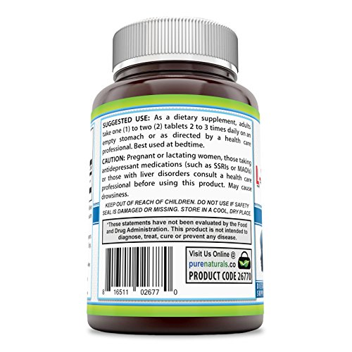 -. Binding : Health and Beauty -. Brand : Pure Naturals -. IsAdultProduct : 0 -. Label : Pure Naturals -. Manufacturer : Pure Naturals -. ProductGroup : Health and Beauty -. ProductTypeName : HEALTH_PERSONAL_CARE -. Publisher : Pure Naturals -. Studio : Pure Naturals -. Title : Pure Naturals L-Tryptophan 1000 Mg, Tablets