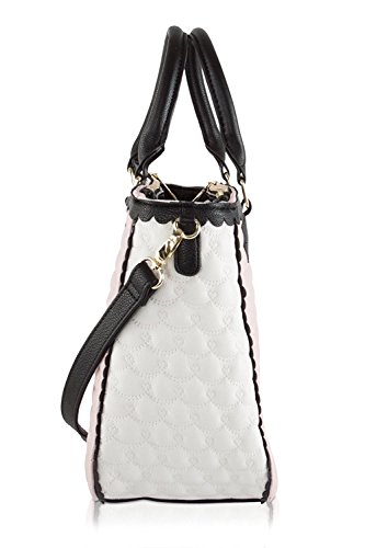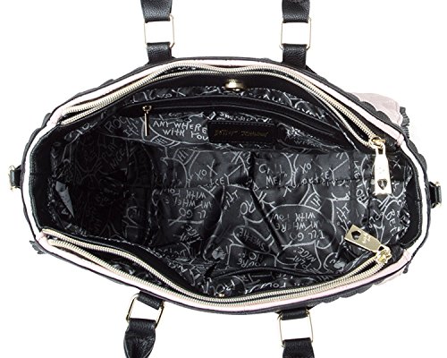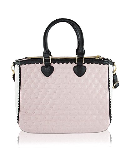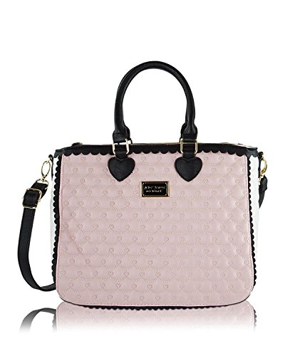 Fashion's in full bloom on this adorable Tote from Betsey Johnson. Allover scallop heart quilted pattern with front Betsey Johnson signature plate Making it fun and flirty, Double top handles with 6" drop, includes detachable adjustable cross-body strap with 23" drop, 2 zipper compartments and center magnetic pocket opens to fully lined interior with 2 slip pockets and zipper pocket, It Brightens up your outfit with a pop of personality.Feature