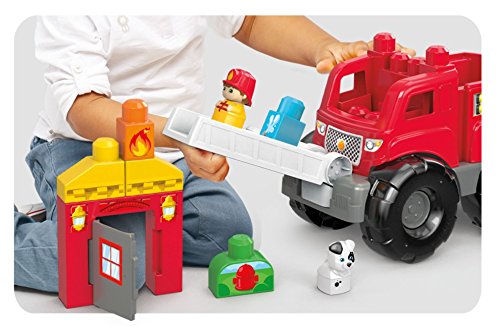 -. Binding : Toy -. Brand : Mega Bloks -. EAN : 0887961397130 -. Feature : Bright red fire truck and easy-to-build fire station / 10-piece playset includes building blocks with rescue-themed decoration / Moving ladder and fire station door that really opens! / Comes with Firefighter and Dog Block Buddies / Packaging may vary -. IsAdultProduct : 0 -. ItemPartNumber : DXH38 -. Label : Mattel -. Manufacturer : Mattel -. Model : DXH38 -. MPN : DXH38 -. PackageQuantity : 1 -. PartNumber : DXH38 -. ProductGroup : Toy -. ProductTypeName : TOYS_AND_GAMES -. Publisher : Mattel -. Studio : Mattel -. Title : Mega Bloks Fire Truck Rescue Building Set -. UPC : 887961397130 -. Warranty : 1 year warranty against manufacturer defects