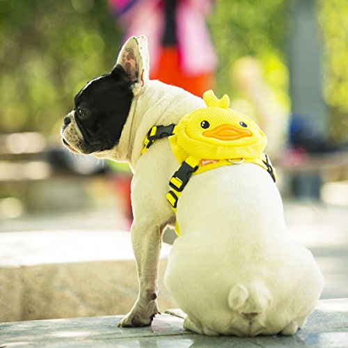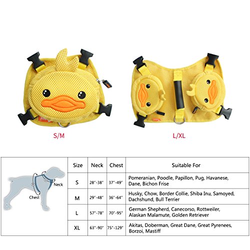 -. Feature : Made of Mesh fabric, double-layered, soft and durable. / Padded edge, D-ring leash attachment. Matching leash included. / Adjustable straps and mesh harness provide maximum fit, breathability and comfortability. / Easy to wear with quick-release buckle. Enough space for snacks and little toys. / Lovely cartoon formative backpack. Great choice for walking, shopping and costume parties.
