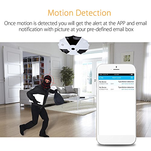 -. Binding : Electronics -. Brand : Onebird -. Color : As Shown -. EAN : 0889251295058 -. Feature : 360°Panoramic Camera: Panoramic Fisheye IP Camera Video Picture 3MP(High Definition: 1080P) has 360 degree 1.44mm lens. / Two Way Audio: Built in Microphone and speaker, provide a real time communication. support Micro SD card (Max support 128GB). / Motion Detection Alarm: Once motion is detected you will get the alert at the APP and email notification with picture at your pre-defined email box. / Quick Wi-Fi Setup via iPhone or Android Smartphone using the "VR Cam" App . Seamlessly Stream Video Directly to Your Smartphone, Tablet, Apple Mac or Windows PC / Night Vision: The automatic infrared lights make sure you can see clearly in the dark. -. Label : Onebird -. Manufacturer : Onebird -. MPN : USONEHHY011FBA -. PartNumber : USONEHHY011FBA -. ProductGroup : CE -. ProductTypeName : PHONE_ACCESSORY -. Publisher : Onebird -. Studio : Onebird -. Title : Onebird 1080P HD IP Camera Home Security 360°Panoramic Wifi Wireless Dome Camera Two Way Audio Motion Detection Night Vision(US Edition) -. UPC : 889251295058