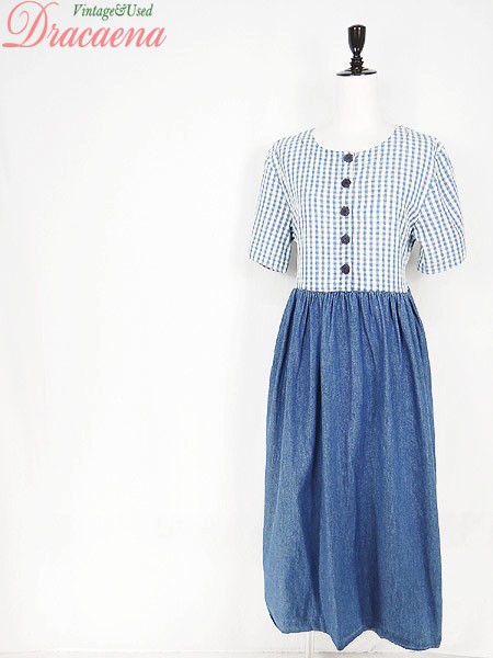 Ladies ブランド- カラー青ベース メール便不可 コンディション★★★ 素材コットン 表記サイズS 実寸サイズ 着丈 119 cm 身幅 47 cm 肩幅 42 cm 袖丈 24 cm ウエスト 35 インチ( 90 cm) ※ウエスト・ヒップ以外は平置き採寸