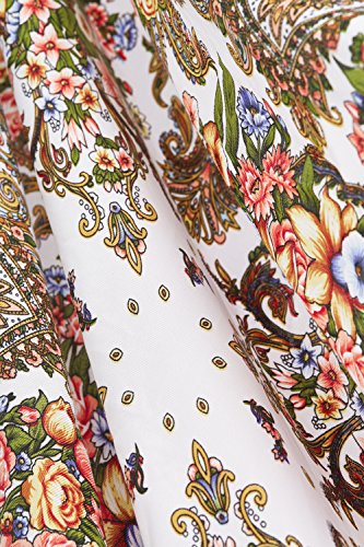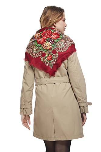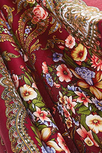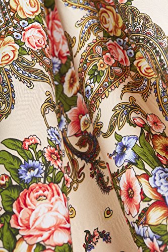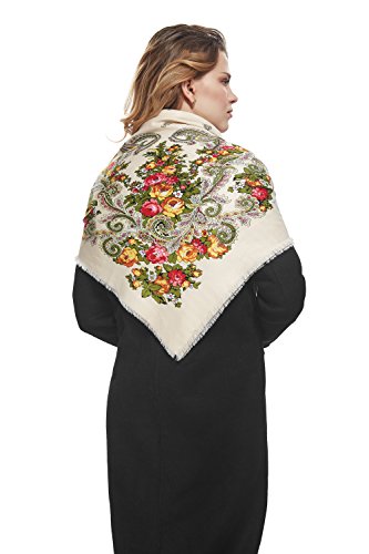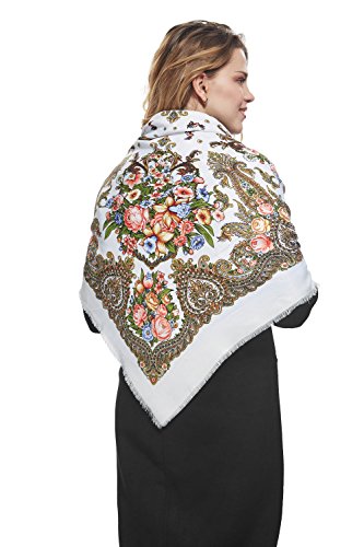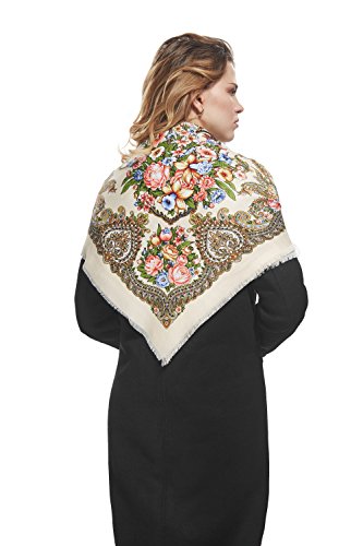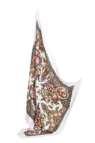 Binding : Apparel Product Description This fine wrap echoes famous Russian, Ukrainian and Polish floral shawls and especially Pavlovsky Posad scarves that are widely known as a classic symbol of Slavic handicraft. Back in the 18th century Russian shawls served both as a fashion women's accessory and as a decoration for interiors. Now embroidered scarfs represent a stunning mix of old traditions and modern style. Highlights ? The square scarf with floral ornaments and short fringe all over the perimeter. ? The shawl features themes found in nature. ? The ethnic shawl can be worn around the neck, across the shoulders and over the head as a bandana or as a classic Russian head wrap (platok). ? This multifunctional scarf will add a touch of bohemian elegance to your look and keep you warm during chilly days. Materials and care tips ? The closely woven cotton blend fabric boasts the lustre look and soft feel of silk. Durable material with no stretch has excellet drape. It's hypoallergenic and won't irritate your skin. ? To save the vibrant colors of the wrap hand wash it in cold water using mild detergent. ? The shawl is wrinkle resistant, so it doesn't need everyday ironing. Warranty We are sure about high quality of our products. That's why we offer 30 day money back guarantee on all scarfs. If you don't like the shawl for any reason, return it within 30 days and get a full refund. 0