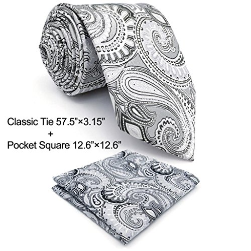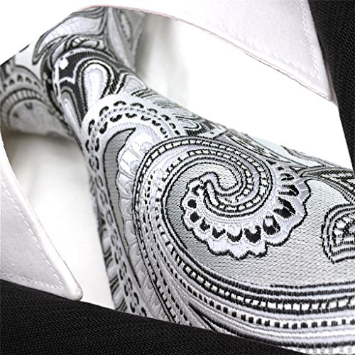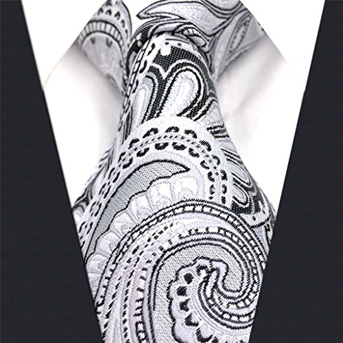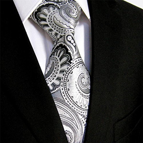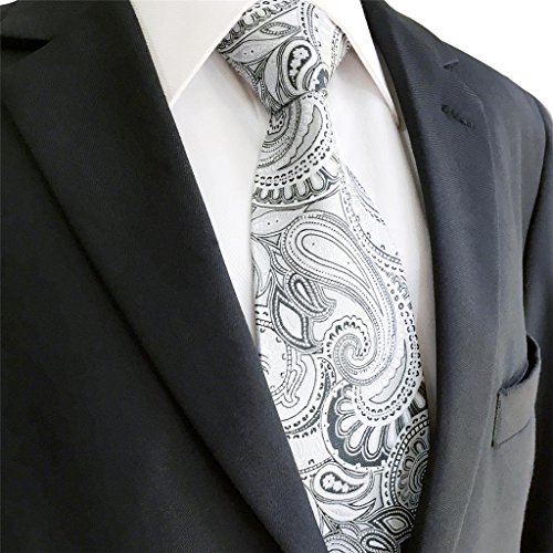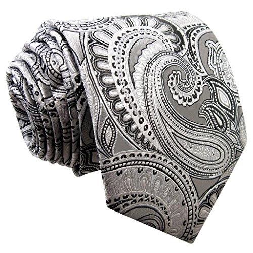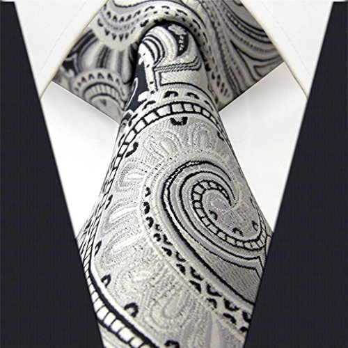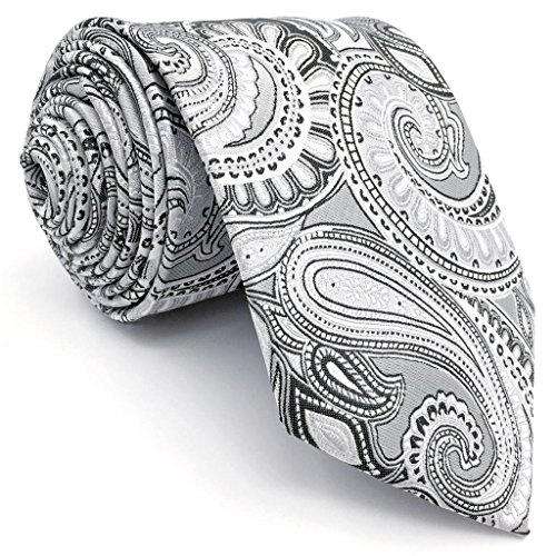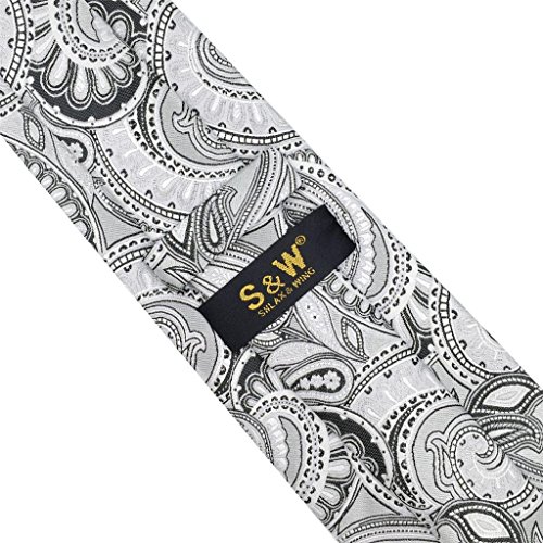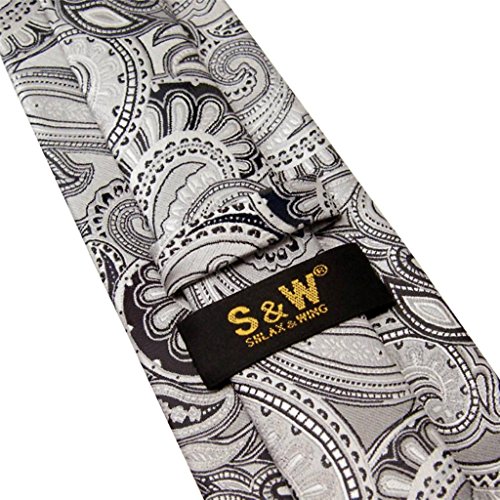 ShlaxWing Extra Long Size tie Paisley Gray Silver Mens Neckties 100% Silk