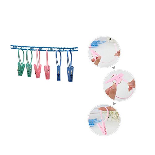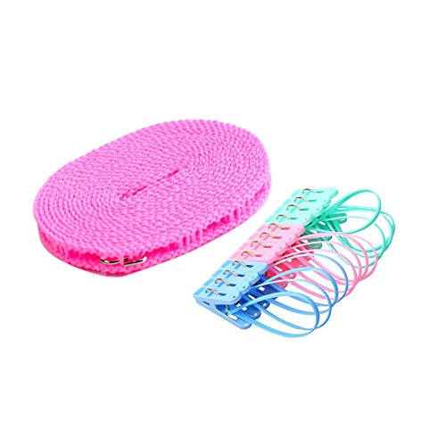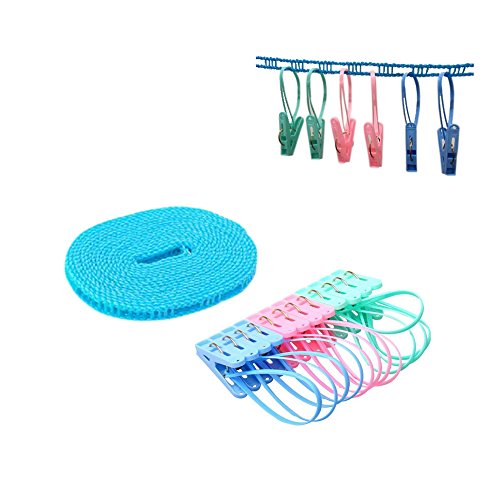 Lordjade 5 m Portable Windproof Clip Outdoor Indoor and 12pcs Wind Plastic Plastic Clotheslines and Clothespins. Perfect Windbreaker Hanger Camping & Home use. Random Colors.