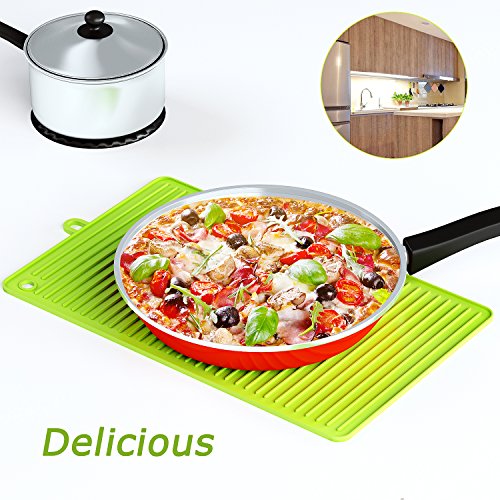 - ♣Multifunction: With size of 13.77’’ X 8.46’’ X 0.19’’ , you can use it as pot holder, trivets mat, cup pad, spoon rest, coaster and any other mat for hot container in your kitchen.