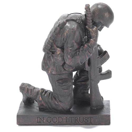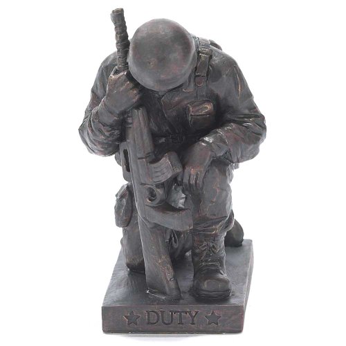Duty Faith God Praying Soldier 5 inch Gray Resin Stone Table Top Figurine