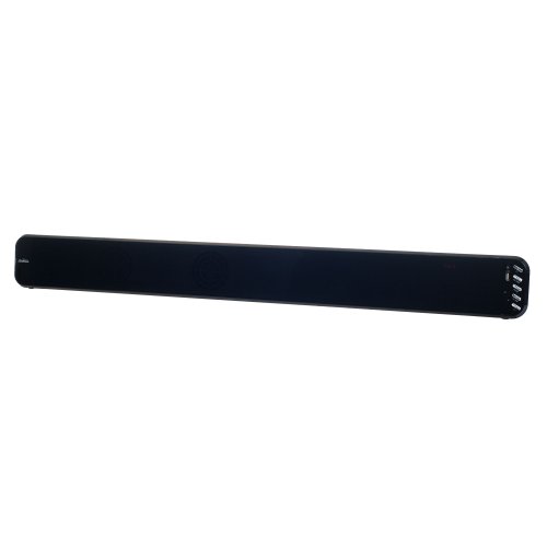 -. Feature : Length & Power Output: 37-inch 80 W (2.0 channels) - ideal for __-inch and larger TVs / Subwoofer: None / Connectivity: Bluetooth / Wall Mountable: Yes; Remote Included: Yes / Inputs: 2 RCA stereo inputs, 1 Auxiliary Input / Slim Bluetooth Sound Bar, Versatile Design / Built in Bluetooth Music Receiver, Digital Volume Control / 2 RCA Stereo Inputs, 1 Aux Input / SD Card and USB Port Input, 80 Watt Output / Wall Hanging and Desktop Design, Remote Controller Included