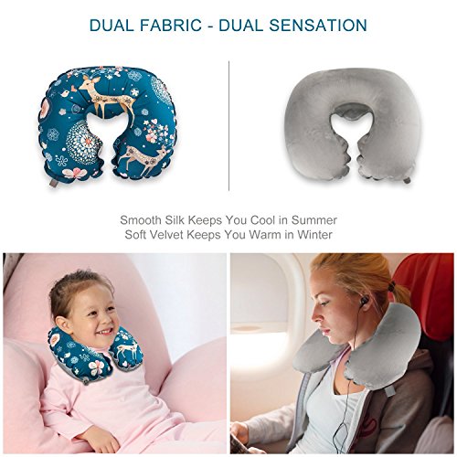 MOST COMPLETE TRAVEL BUNDLE FOR WHOLE FAMILY - Rest Well-Travel Well For Everyone. Our family-focused travel bundle comes with 1 premium inflatable neck pillow, 1 eye mask and 2 ear plugs so parent can get well-rested too. Inflatable neck pillow features innovative TPU composite material with dual fabrics: silky smooth fabric for summer and warm and soft crystal velvet fabric for winter.