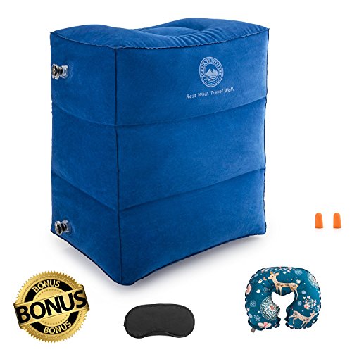 Inflatable Leg Rest for Air Travel - Height Adjustable Inflatable Pillow Perfect for Leg Rest, Foot Rest and Children Sleeper-Pillow. Bonus 4 PCs Complete Travel Bundle