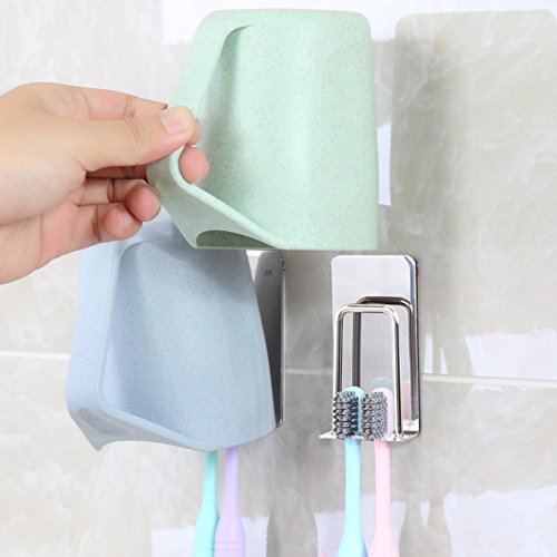 Yafeco 2 Pcs toothbrush Holder Stand Wall Mounted with Cup Rack for Vanity Storage,Kids Bathroom Toothbrush Holder, Brushed Stainless Steel