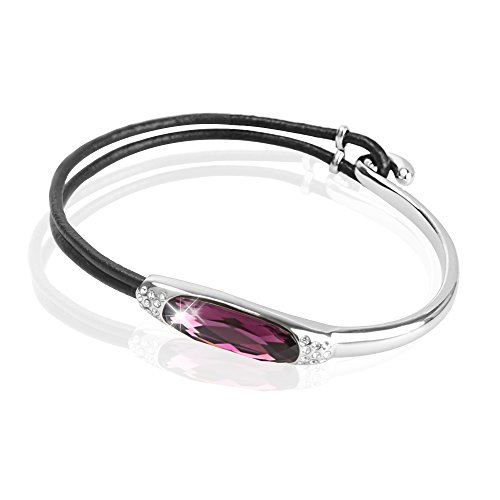 -. Feature : Metarial: Made of hide rope and high-end environmental copper.Make sure no harm to the skin. Adorned with big Swaroski crystal. / Specifications: 18K white gold plated. Inner Diameter: 2.36 inch. / Stylish Design: Outward appearance exquisite fashion. Available in three colors: Fuchsia, Cape Blue and Apricot. / A Perfect Gift : Come in a Brand jewelry gift box. Perfect gift for Christmas Day, Anniversary Day, Valentines Day and Birthday to your girlfriend, wife, mom,friend ,workmate and everyone you love. / A perfect accessory to your outfit or as an appropriate gift. This exquisite jewelry gives you a totally fresh impression. Just be happy to add this beautiful necklace to your jewelry collection.