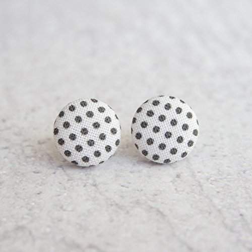 -. Title : Black and White Polka Dot Fabric Button Earrings