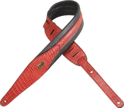 [Product Information]- 2 1/2 inch imitation crocodile leather guitar strap with foam padding and garment leather backing.