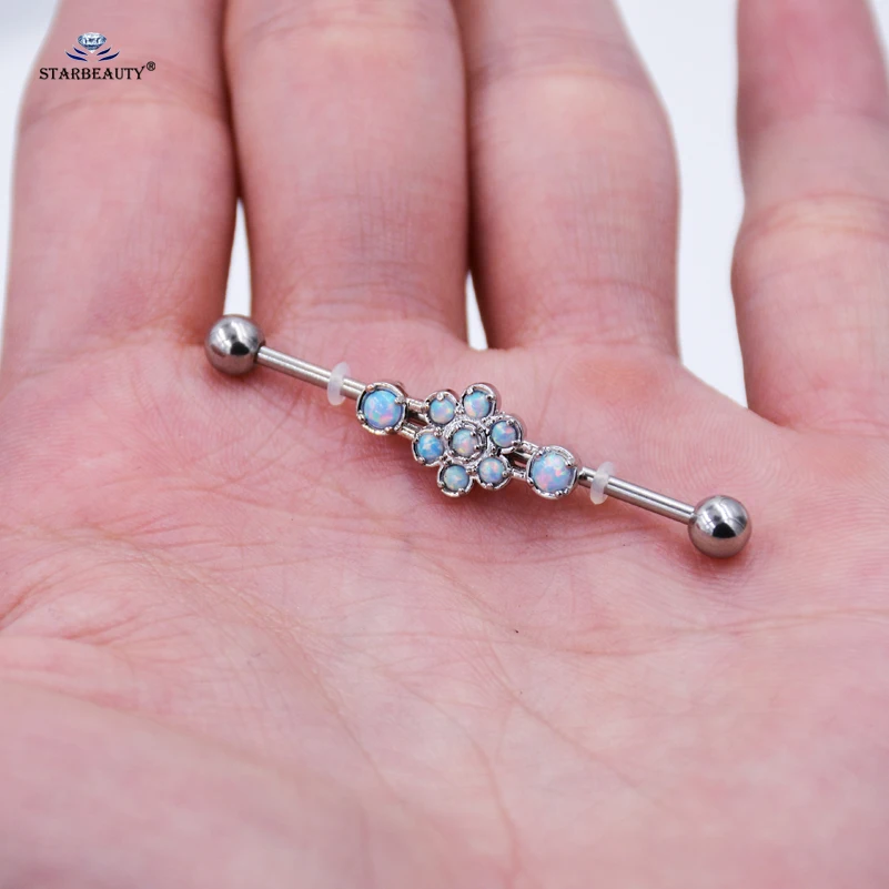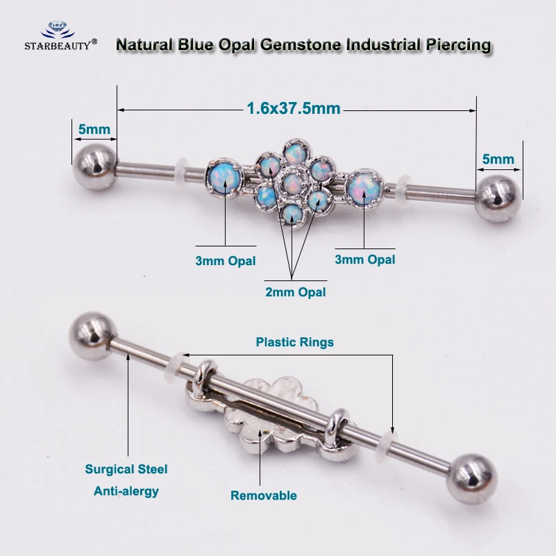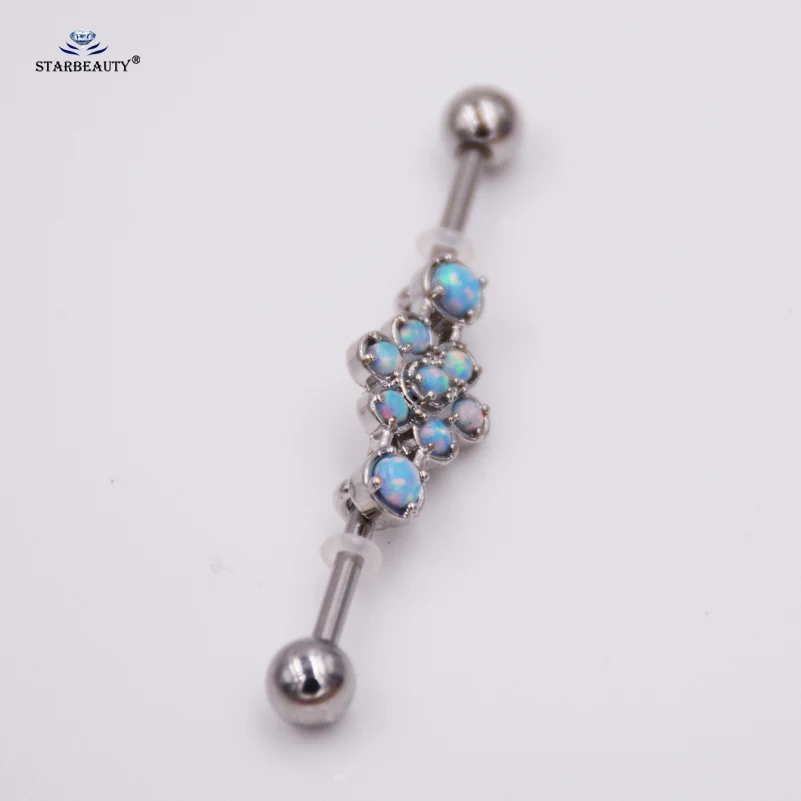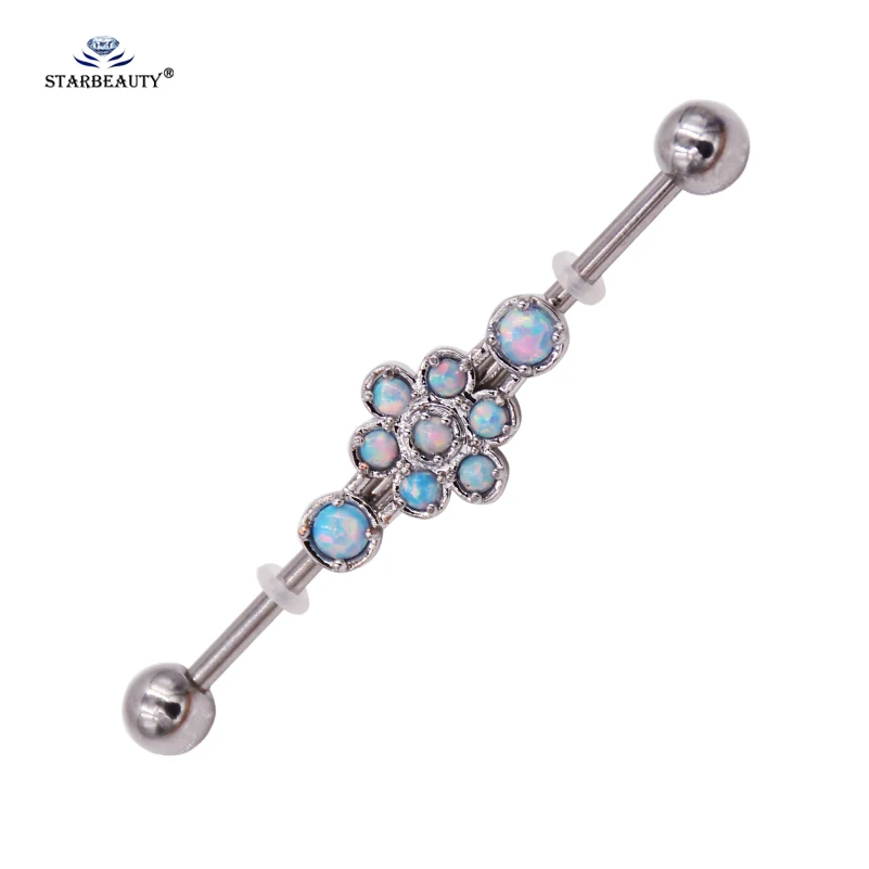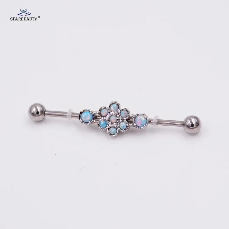 Opal Piercing Color:Blue opal Industrial Piercing Earrings