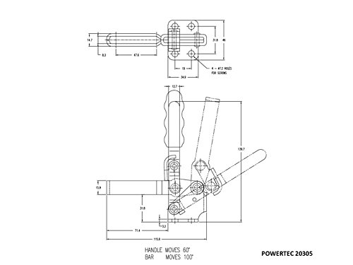 POWERTEC 20305 Vertical Quick-Release Toggle Clamp with 500 lbs Capacity, 12130