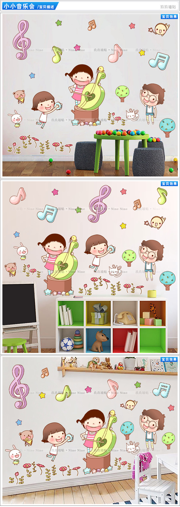 幼儿园儿童音乐兴趣班少儿艺术培训班装饰墙贴卡通吉它音符贴纸画