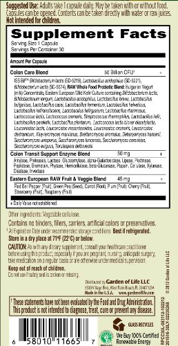 Garden of Life Whole Food Probiotic and Colon Health Supplement - Raw Probiotics Colon Care Dietary Supplement, 30 Vegetarian Capsules