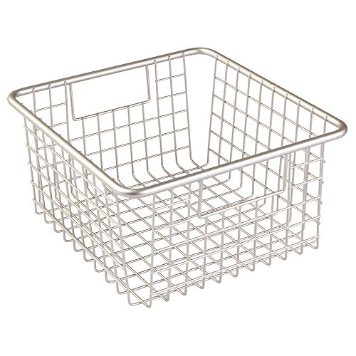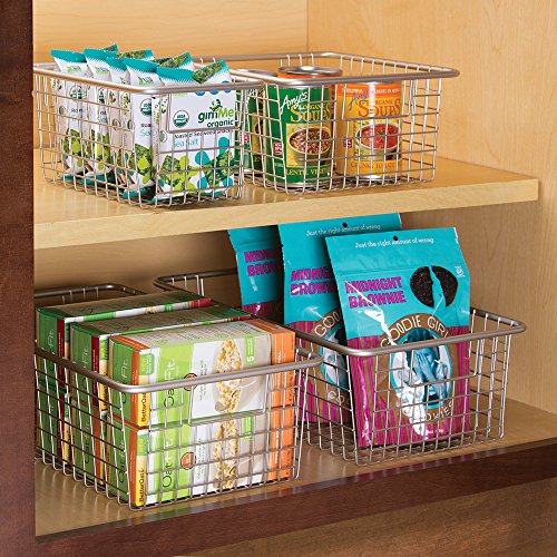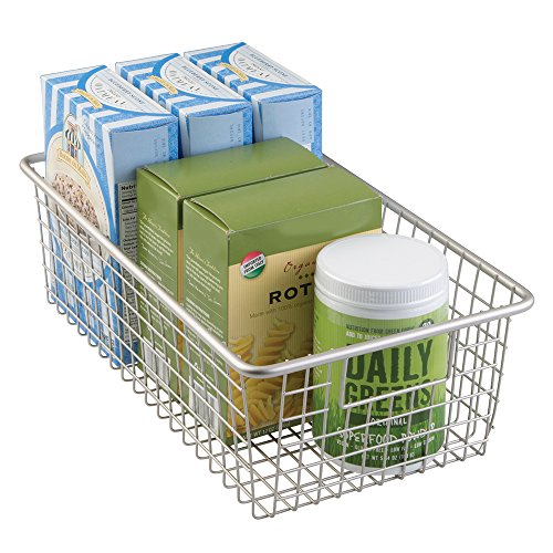 mDesign Household Wire Storage Basket with Handles for Kitchen Cabinets, Pantry, Bathroom - Set of 3, Satin