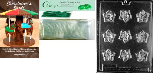 Cybrtrayd MdK25GRBk-F036 Blossom for Filling Fruits and Vegetables Chocolate Candy Mold with Chocolatier's Bundle, Includes 25 Cello Bags, 25 Green Twist Ties and Chocolatier's Guide