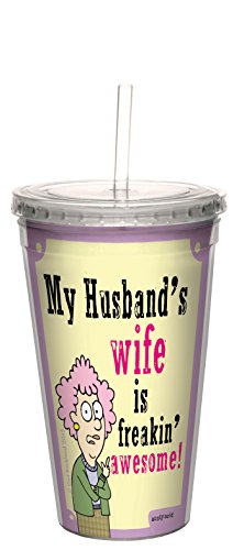 Tree-Free Greetings 16-Ounce Cool Cup with Reusable Straw, Aunty Acid My Husband's Wife (CC98507)