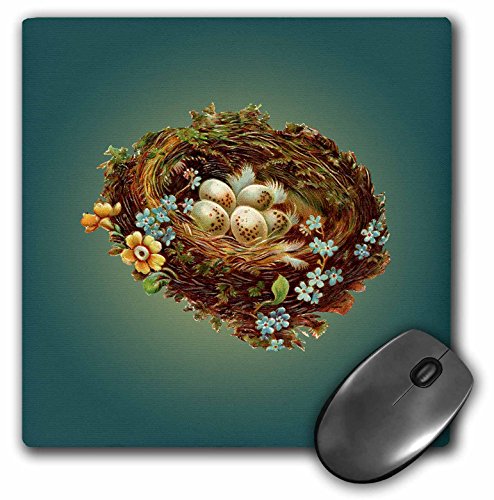 3dRose LLC 8 x 8 x 0.25 Inches Mouse Pad, Victorian Birds Nest With Speckled Eggs and Tiny Blue Flowers - (mp_171356_1)