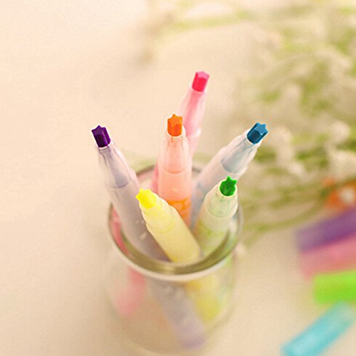 KitMax (TM) Pack of 12 Pcs Cute Cool Colorful Candy Color Star Shape Pen Tip Highlighter Pen Office School Supplies Students Children Gift (Color May Vary)