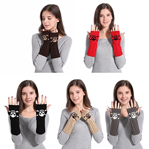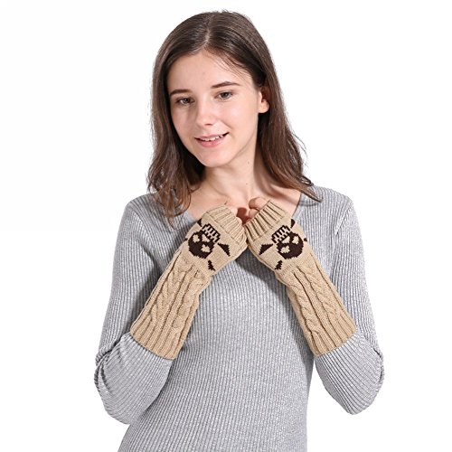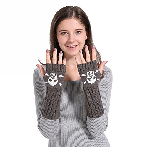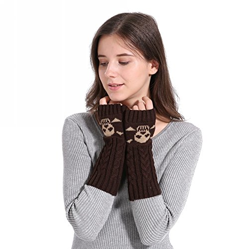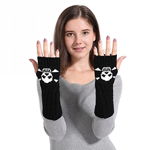 Binding : Apparel Product Description Feature: Fashion style,soft fabric,knitted cute skull pattern Fingerless with a thumb hole,easy movement for the fingers A great accessory of arm warmers to keep warm in winter,great gift for friends and families Specifications: Material: Acrylic. Gloves Length: appro. 26cm/10.2inch Color: Red,Black,Coffee,Khaki,Dark Grey. Quantity: 1 Pair Package includes: 1Pair x Fingerless Gloves