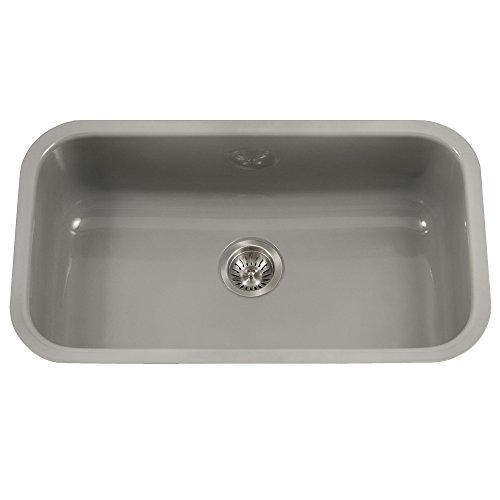 Houzer PCG-3600 SL Porcela Series Porcelain Enamel Steel Undermount Single Bowl Kitchen Sink, Large, Slate
