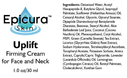 -. Binding : Misc. -. Brand : Epicura Skin -. EAN : 0820103404150 -. Feature : Neck and Décolleté Firming Cream and Anti Aging Moisturizer with Argirline is suitable for all skin types. Skin feels tighter and firmer with regular use / Our anti wrinkle cream contains green tea extract antioxidants which fights the signs of aging. Licorice root promotes skin elasticity and decreases inflammation / Our anti-aging formula also contains palmitoyl pentapeptides and hyaluronic acid to boost collagen and fight wrinkles - Start looking younger today / Proudly manufactured in the USA with strict adherence to good manufacturing practices / 100% Money Back Guarantee if you are not happy. Simply contact us and we will refund your purchase P.R.Ice even if the bottle is empty -. ProductGroup : Beauty -. ProductTypeName : BEAUTY -. Title : Anti Aging Cream for Neck and Décolleté - Moisturizers with Argireline and Green Tea Extract - With Peptides to Boost Firming Collagen and Fight Wrinkles - 30ml -. UPC : 820103404150
