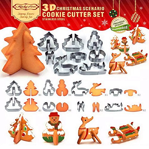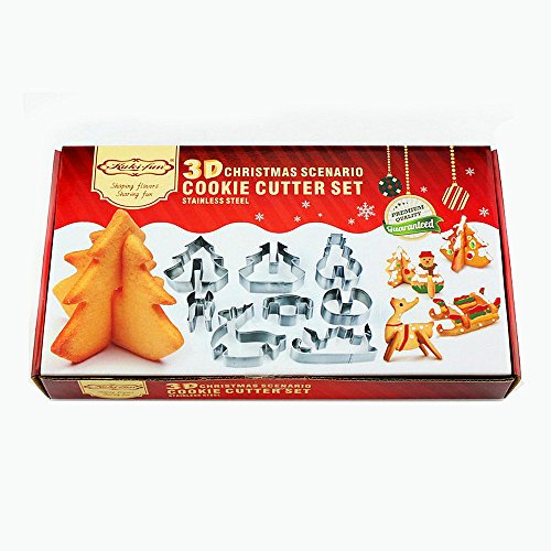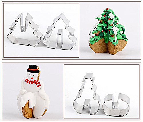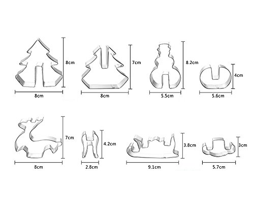 MUMENG Christmas 3D Cookie Baking Molds, Stainless Steel Cookie Cutters Set, Favorite Holiday Shapes 8Pcs Set