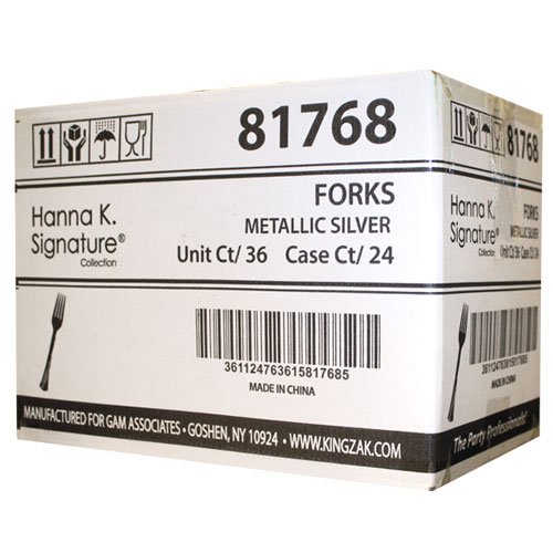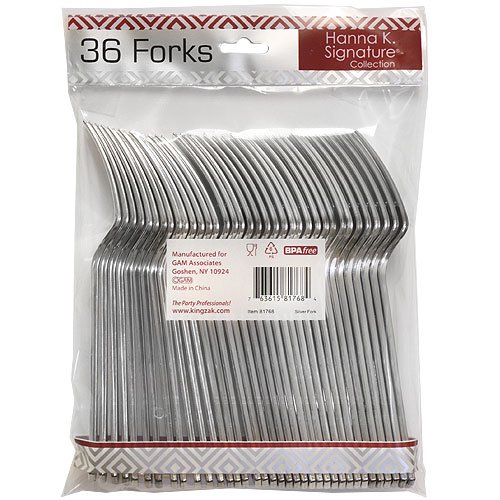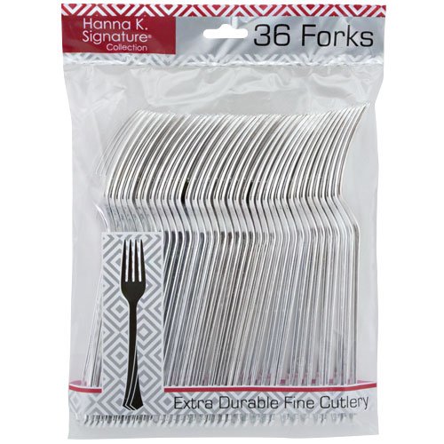 Hanna K. Signature Collection 36 Count Polished Heavyweight Plastic Fork, Silver