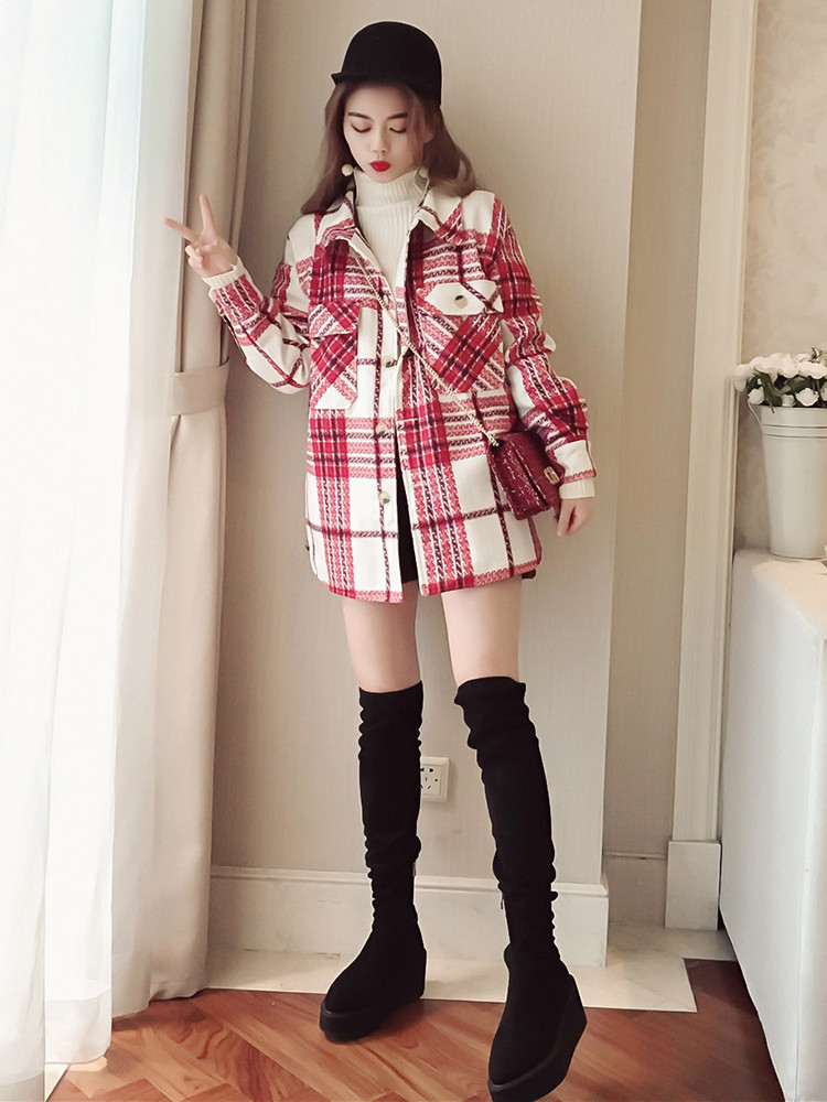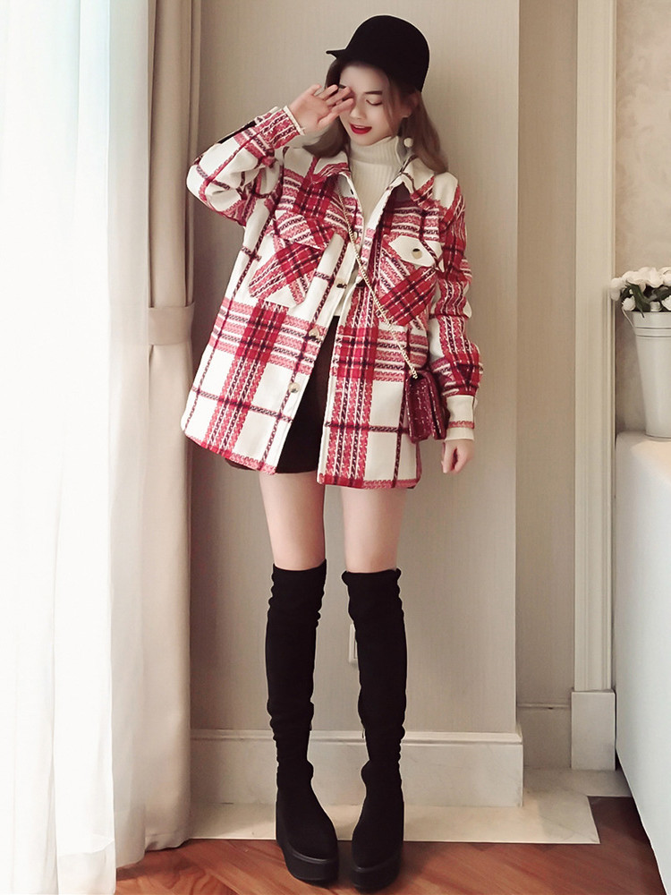 赤のチェック柄、ネルシャツスタイルのジャケットになります★