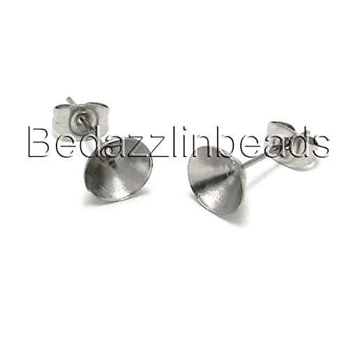 20 Hypo-Allergenic 304 Grade Stainless Surgical Steel Cup Setting Earring Findings (8mm Cup)
