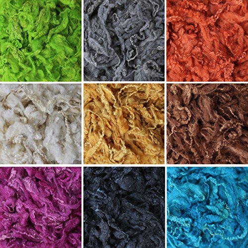FELTING WOOL with CURLY LOCKS for Needle Felting, Spinning, Doll Hair and Waldorf Crafts - 9 Color Variety Pack